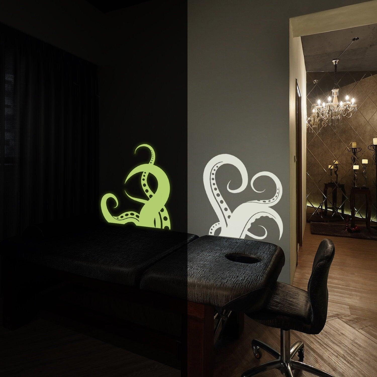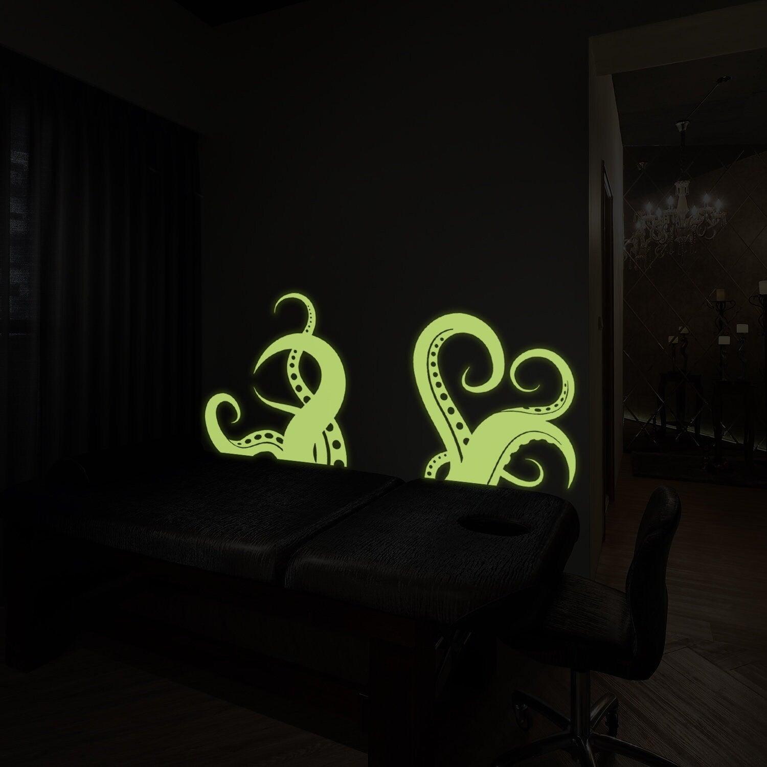 Im Dunkeln leuchtender Oktopus-Tentakel-Wandaufkleber aus Vinyl – Nachtleuchtender Badezimmer-Tintenfisch-Kraken-Dekor-Aufkleber