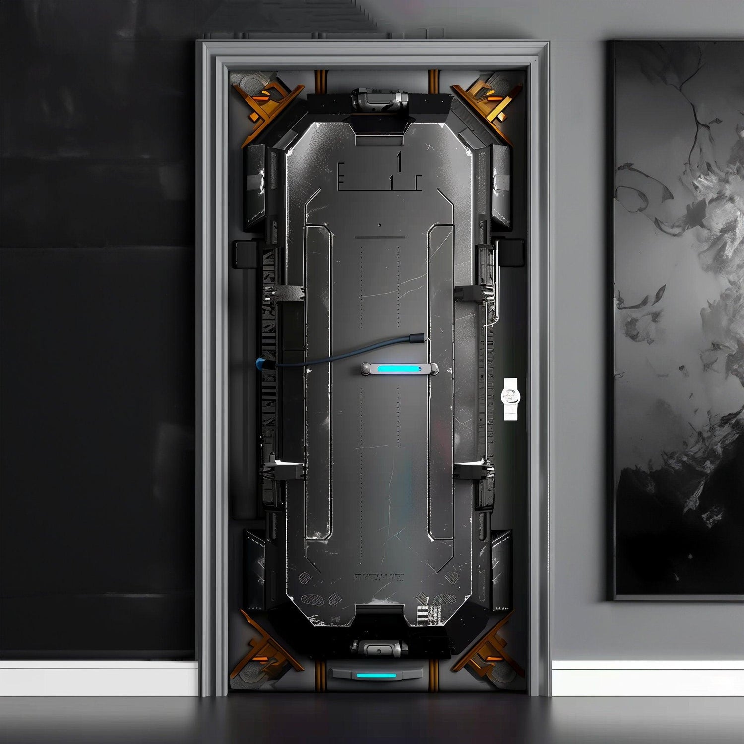 Verwandeln Sie Ihre gewöhnliche Tür mit unserem 3D-Raumschiff-Türaufkleber in ein futuristisches Tor. Dieser abnehmbare Wandaufkleber mit Luftschleusentor verleiht Ihrer Inneneinrichtung eine einzigartige und beeindruckende Note. Diese abziehbare und aufklebbare Vinylfolie ist perfekt, um jedem Raum ein Science-Fiction-Flair zu verleihen und passt auf die meisten Standardtüren.