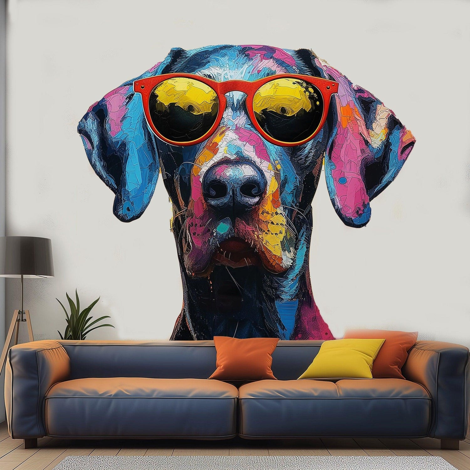 Wandaufkleber „Deutsche Dogge mit Sonnenbrille“ – lebendiger Aquarell-Hundeaufkleber für dynamische Raumdekoration - 8 ist auf Lager und wird versandt, sobald es wieder verfügbar ist