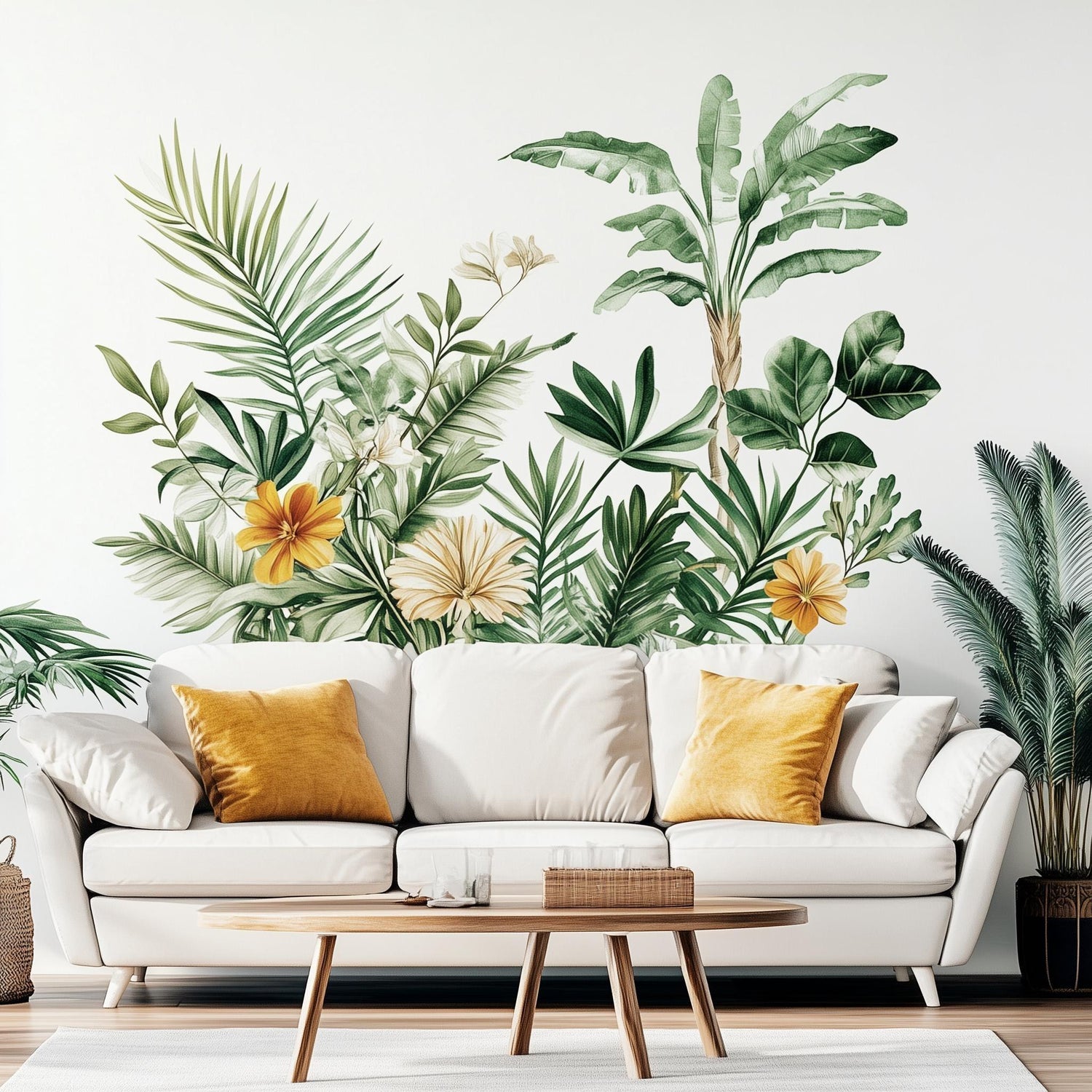 Botanical Wall Decal | Tropical Leaf and Flower Wall Sticker | Removable Nature-Inspired Wall Art for Living Room, Bedroom, or Office Decor
