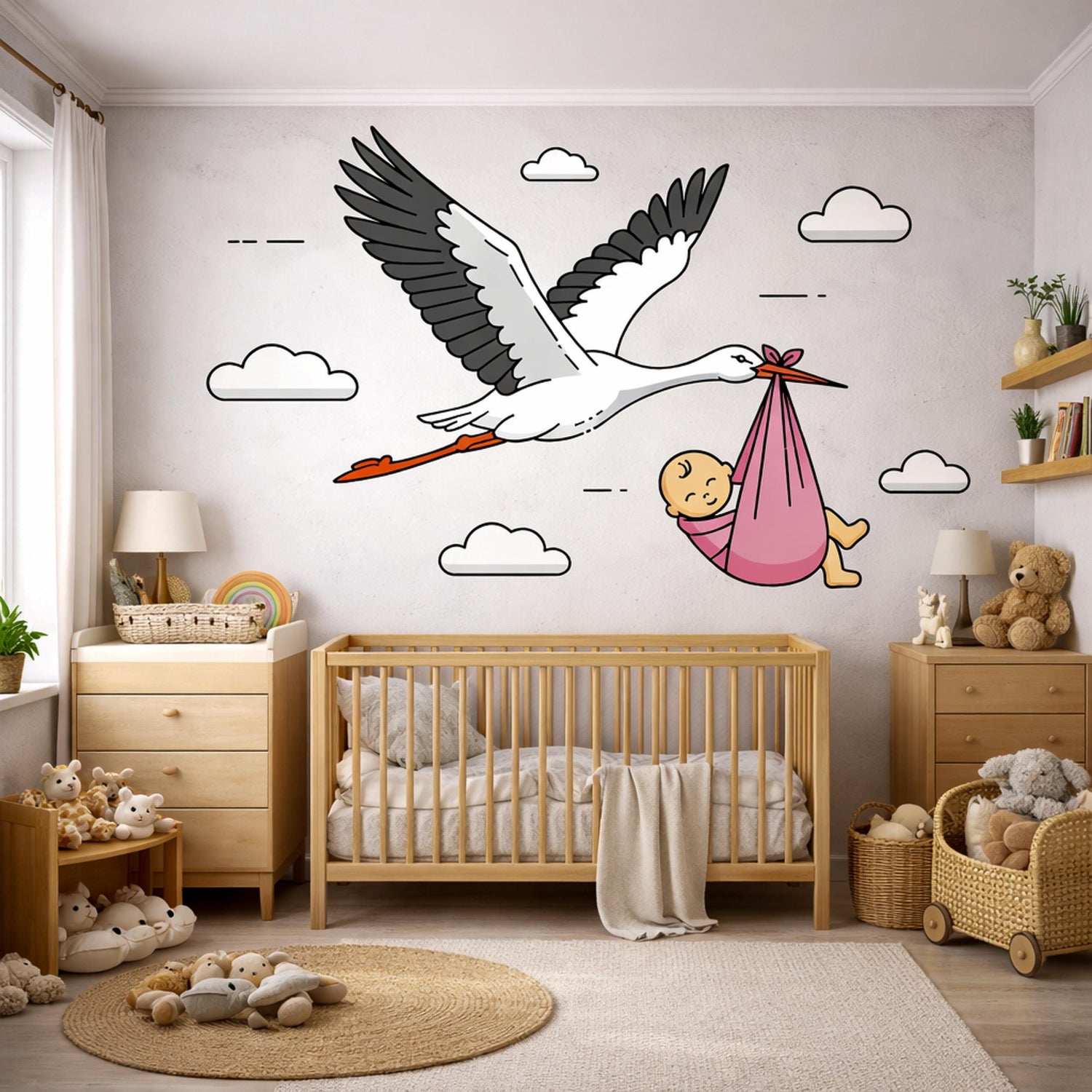 Stork Delivering Baby Girl | Nursery Wall Decal