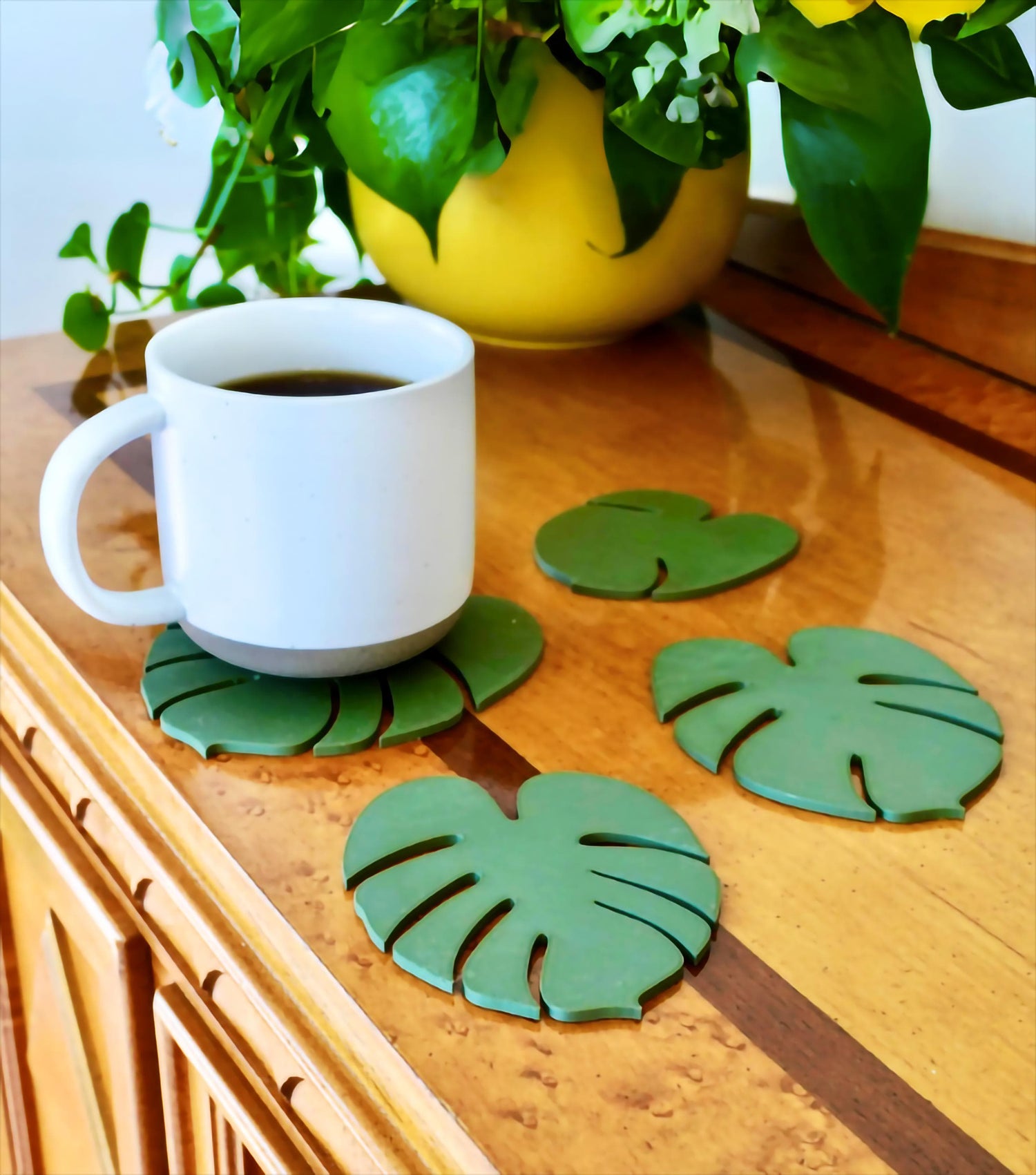 Monstera Leaf Coaster Set | Magnetic Coaster Plant Holder | 3D Printed Coaster Storage | Stylish Home Decor with Functional Coasters