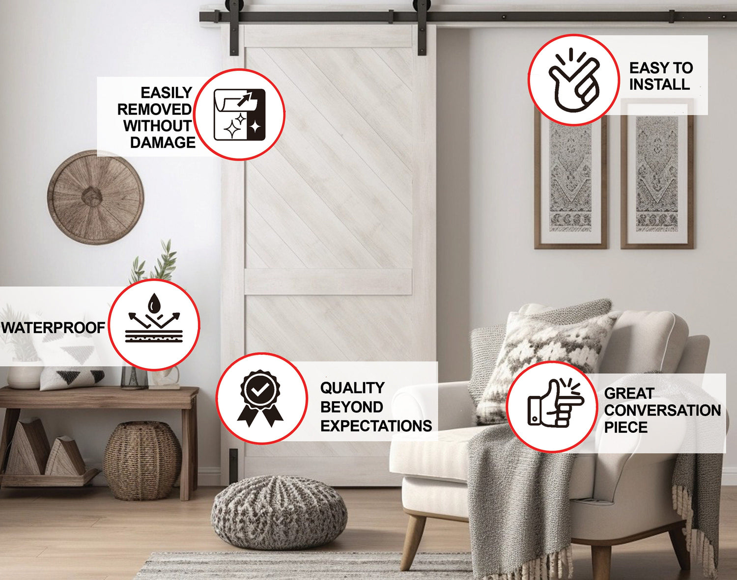 Verwandeln Sie jeden Raum mit dem Tapetenaufkleber „White Barn Door“ in ein gemütliches Bauernhaus. Egal, ob Sie ihn als Statement-Stück oder als Akzent verwenden, dieser Aufkleber wird auf jeden Fall Eindruck machen und für Gesprächsstoff sorgen. Geben Sie sich nicht mit schlichten Wänden zufrieden, sondern verleihen Sie Ihrem Raum mit diesem einzigartigen Aufkleber einen Hauch rustikaler Eleganz. Kaufen Sie jetzt ein und verleihen Sie Ihrem Raum ein einzigartiges und charmantes Upgrade!
