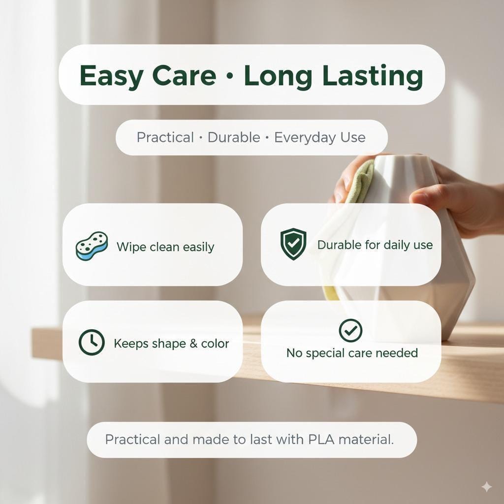 Please note that all our items are made using 3D printing technology. This means the surface will not be perfectly smooth. From a normal viewing distance, it will appear clean and neat, but up close, you will notice fine lines or small layer marks left by the printer. These are completely normal and part of the 3D printing process. Please keep this in mind before placing your order.
