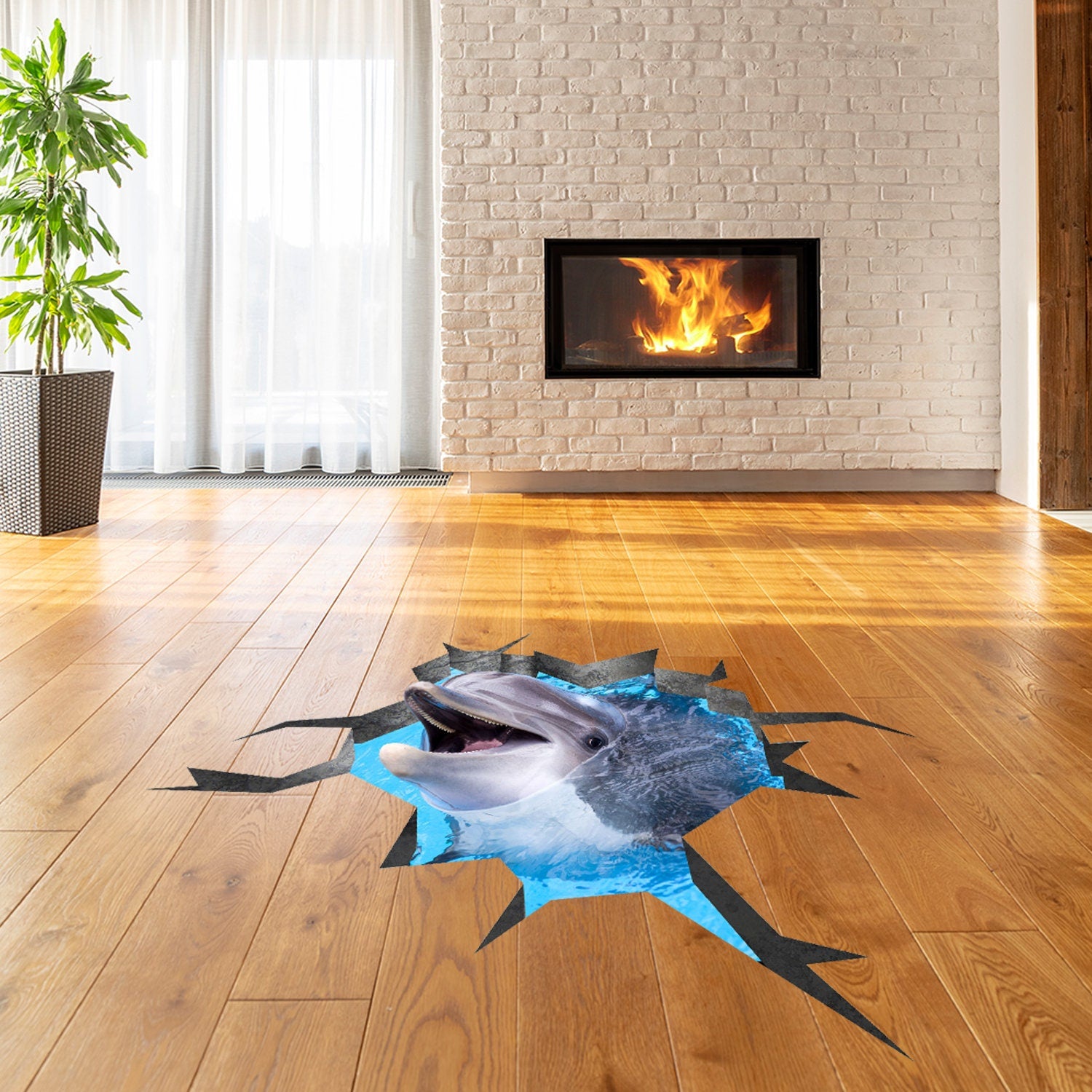 3D-Bodenaufkleber mit Delfinmotiv, für den Bodenbelag, Ozeanloch, Dekoration für Kinderzimmer, Wohnzimmer, Badezimmer