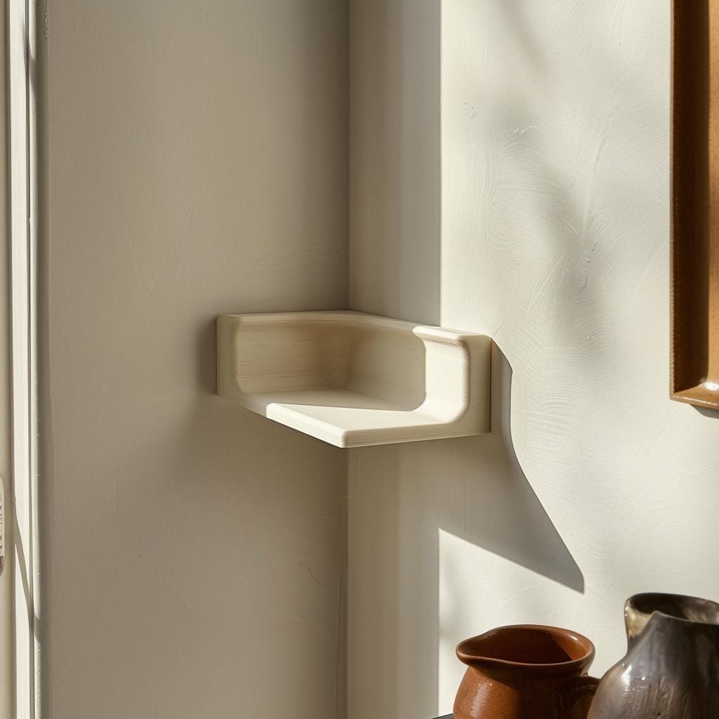 3D Printed Corner Wall Shelf | Minimalist Floating Shelf Design for Small Spaces | Modern PLA Wall Decor Storage and Home Organizer