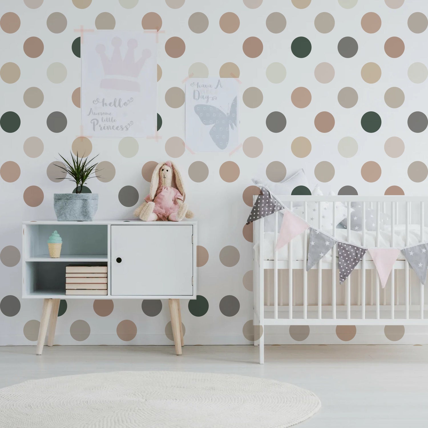 50x Neutral Boho Punkte Aufkleber - Kinderzimmer Baby Kinderzimmer Pastell Kreis Wandaufkleber Dekor