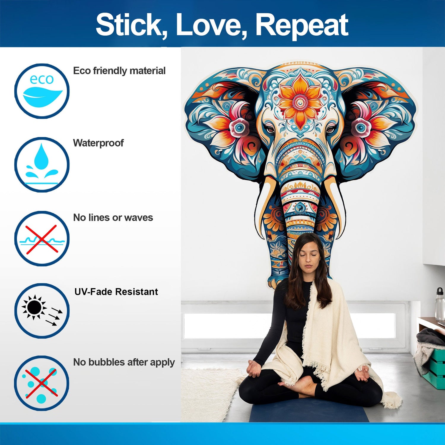 Tauchen Sie Ihren Raum mit unserem floralen Elefanten-Wandaufkleber in eine Welt lebendiger Farben und anspruchsvoller Designs ein. Dieser Aufkleber ist perfekt für Kinderzimmer, spirituelle Ecken oder sogar Yoga-Räume und bietet sowohl Schönheit als auch Ruhe.