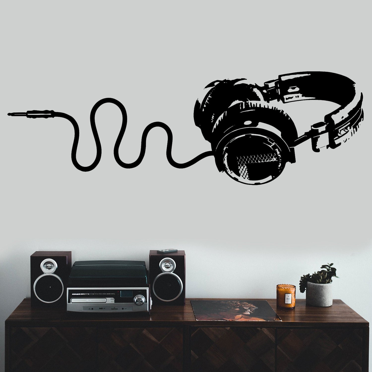 Wandtattoo Musik, Vinyl, DJ-Kopfhörer, Aufkleber für Teenager-Jungenzimmer