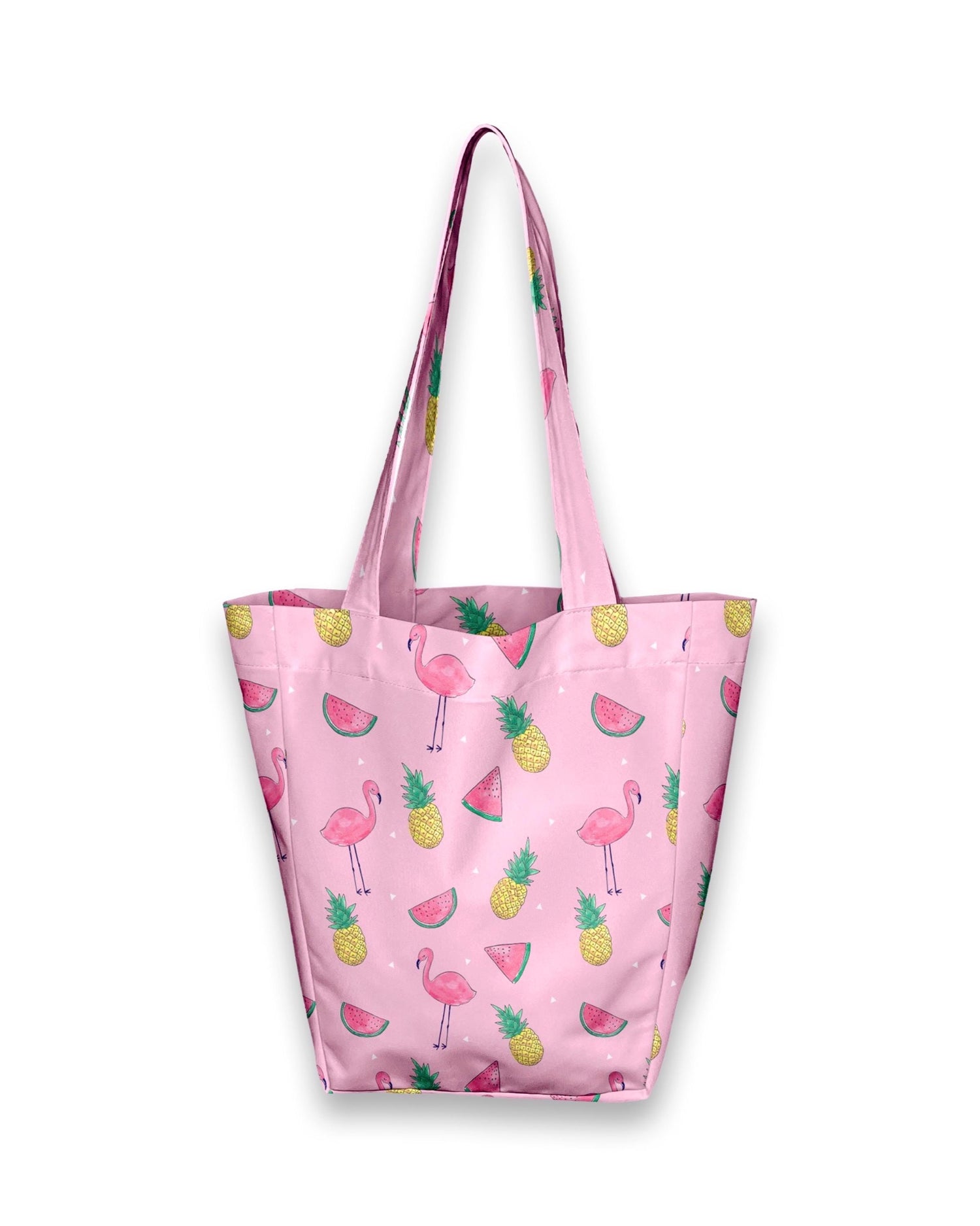 Rosa Einkaufstasche für Kinder mit Flamingos und Ananas | Niedliche Tragetasche für Kinder | Lustige und stylische rosa Flamingo-Tasche für Mädchen