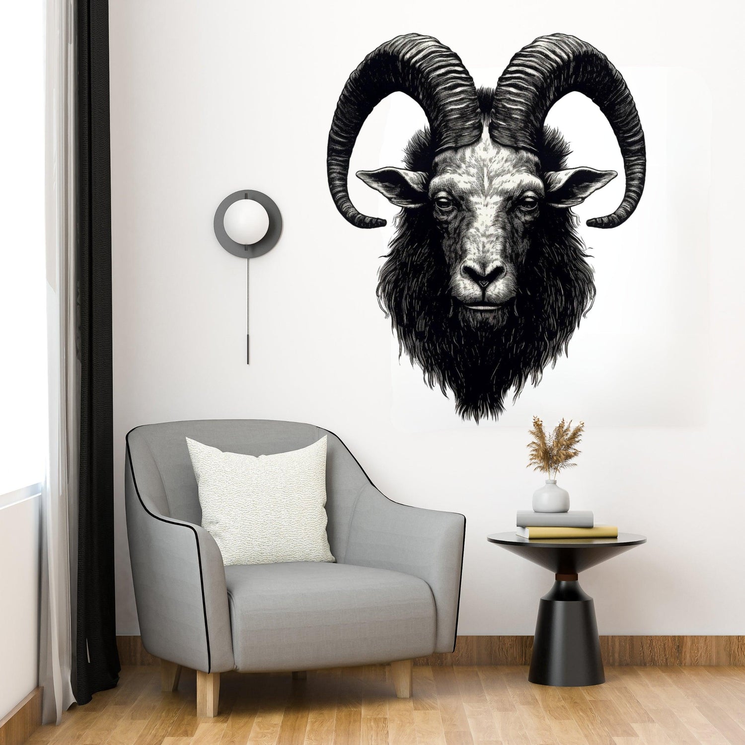 Realistic Surreal Ram Head Wall Decal - Detailed Ink Illustration Art Sticker