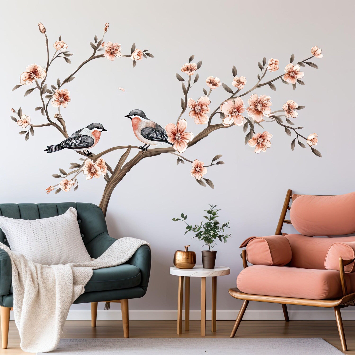 Tree with Blossom Flowers and Birds Wall Sticker - Elegant Vinyl Decor for Living Room