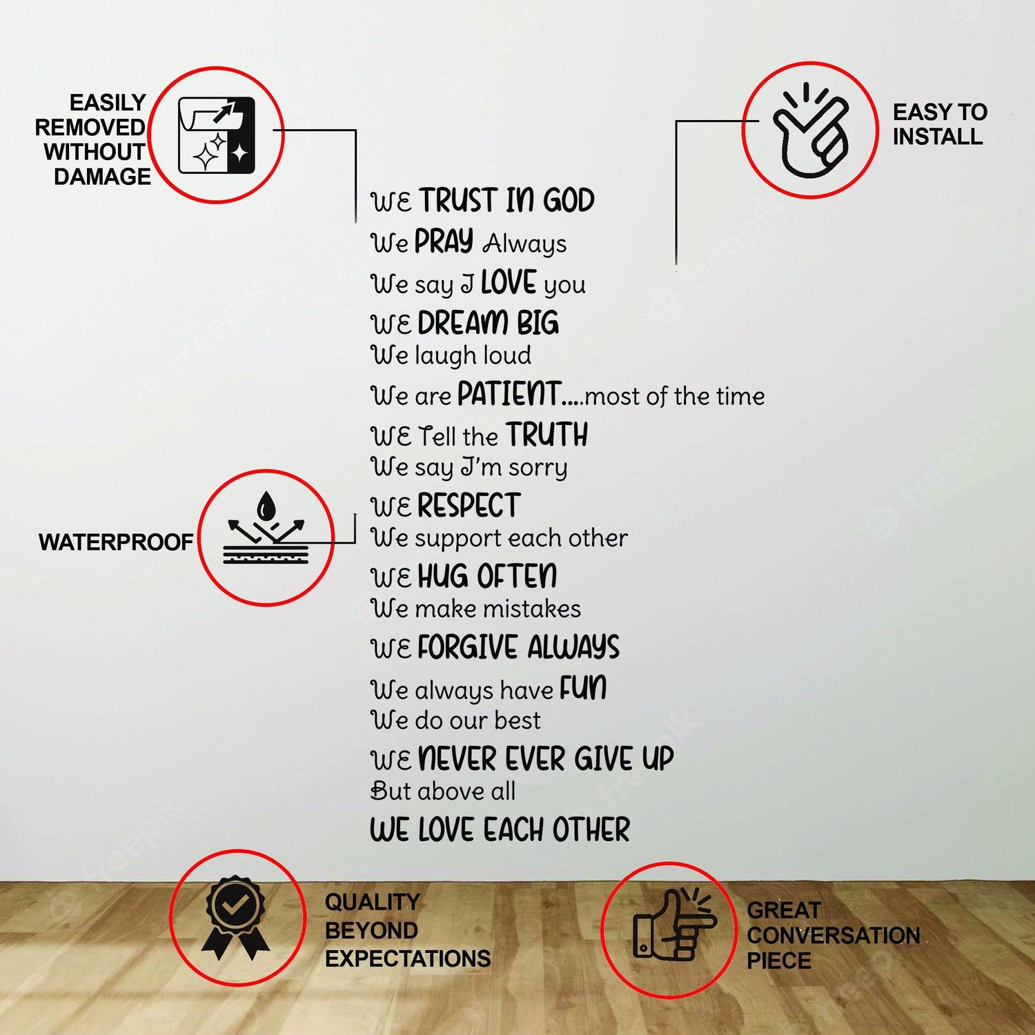 Our stickers are made of European vinyl, which leaves no traces upon removal. They also have repositioning properties, making the removal process easy and trouble-free.