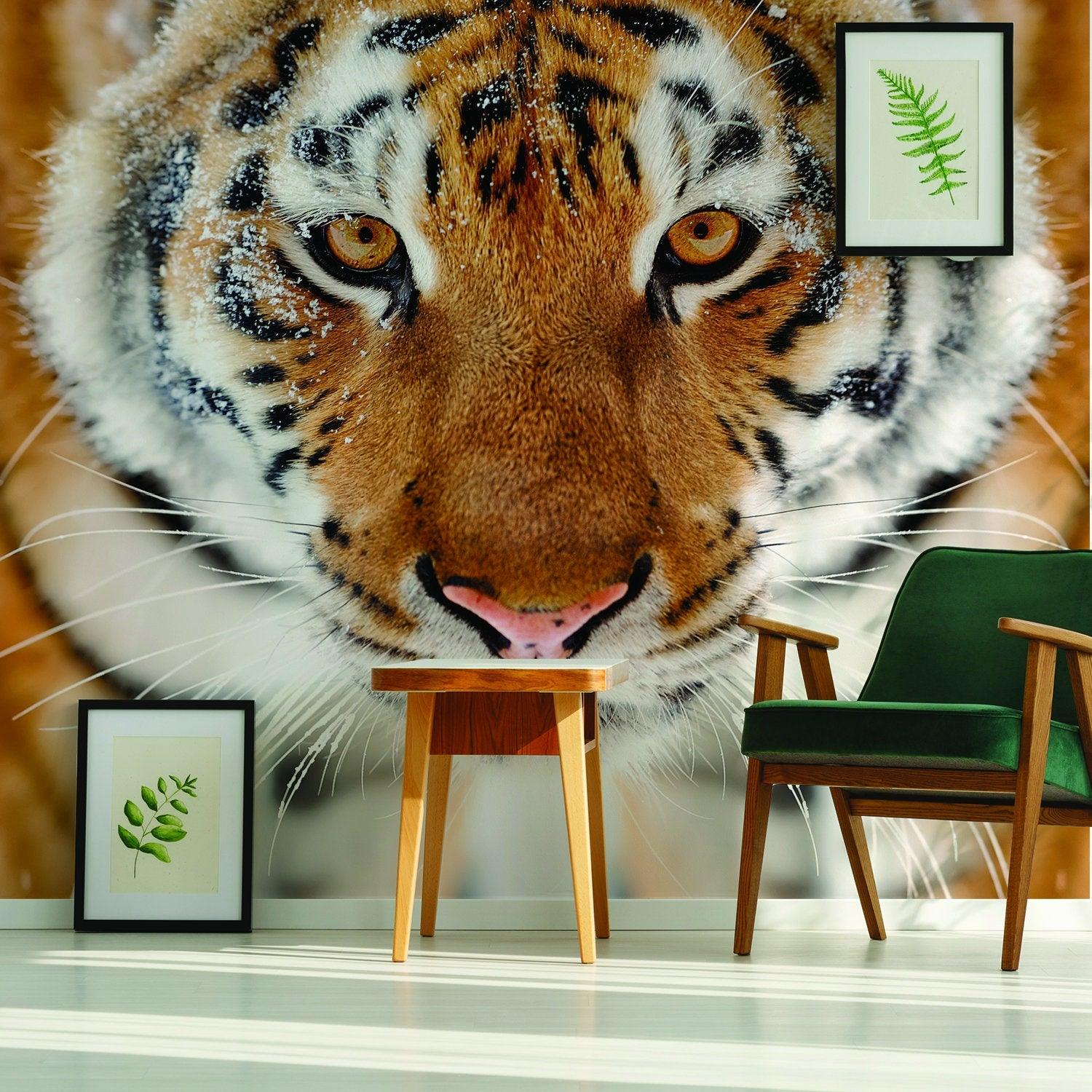 Tiger Wallpaper Stick & Peel Decal – 3D oranži peaga eemaldatava seinapaberi kleebis