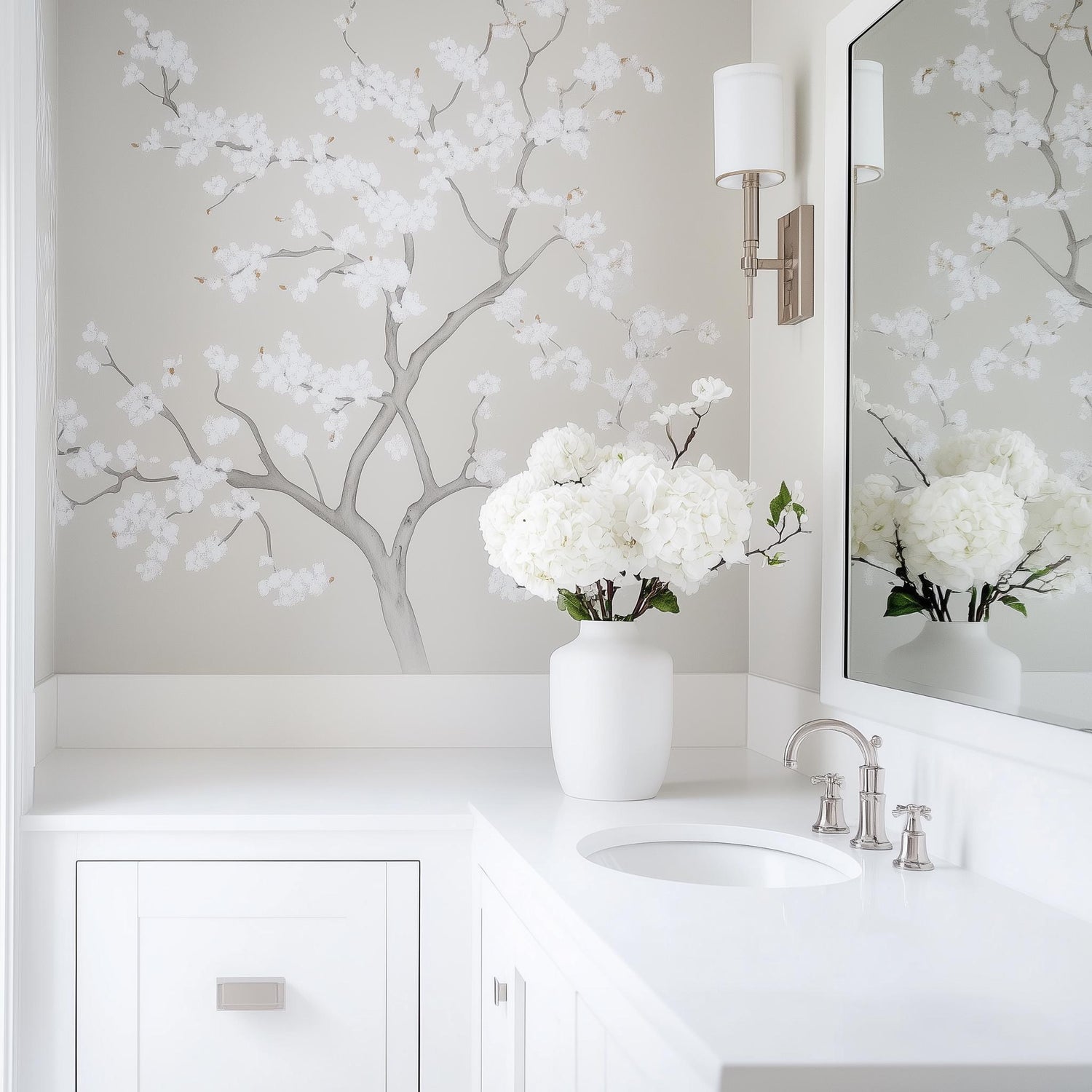 Sellel **vapustava lillelise seinakleebisega** on **elegantne õitsev pehmete valgete õitega puu**, mis on inspireeritud klassikalisest **Chinoiserie kunstist**. **helehall taust ja õrnad detailid** muudavad selle ideaalseks kujundusvalikuks **vannitubade, magamistubade, elutubade ja rafineeritud interjööri** jaoks. Olenemata sellest, kas otsite **luksuslikku, zeni või vintage-esteetikat**, see **peel & stick vinüülkleebis** tõstab teie ruumi vaevata kõrgemale.