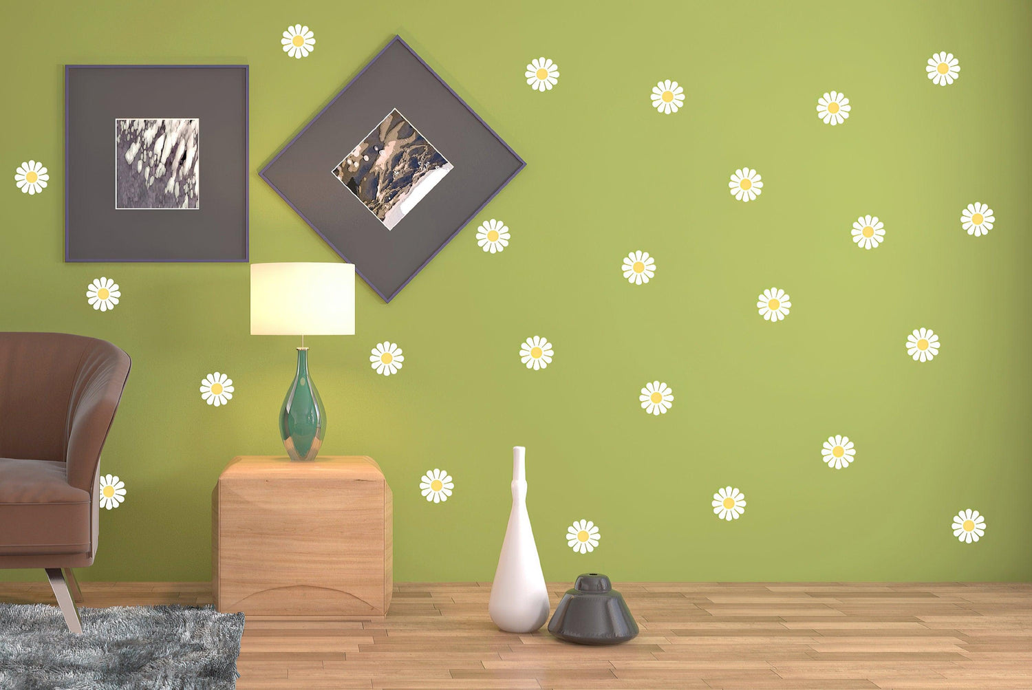 Daisy Flower seinakleebised – koorige ja kleepige veidra õitsenguga dekoratiivsed kleebised