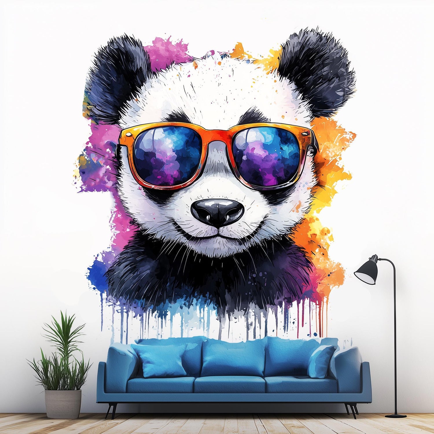 Armas Baby Panda seinakleebis | Akvarell päikeseprillide kunstikleebis | Lõbus lasteaia sisustus | Armsad Panda kleebised lastetoa kaunistamiseks