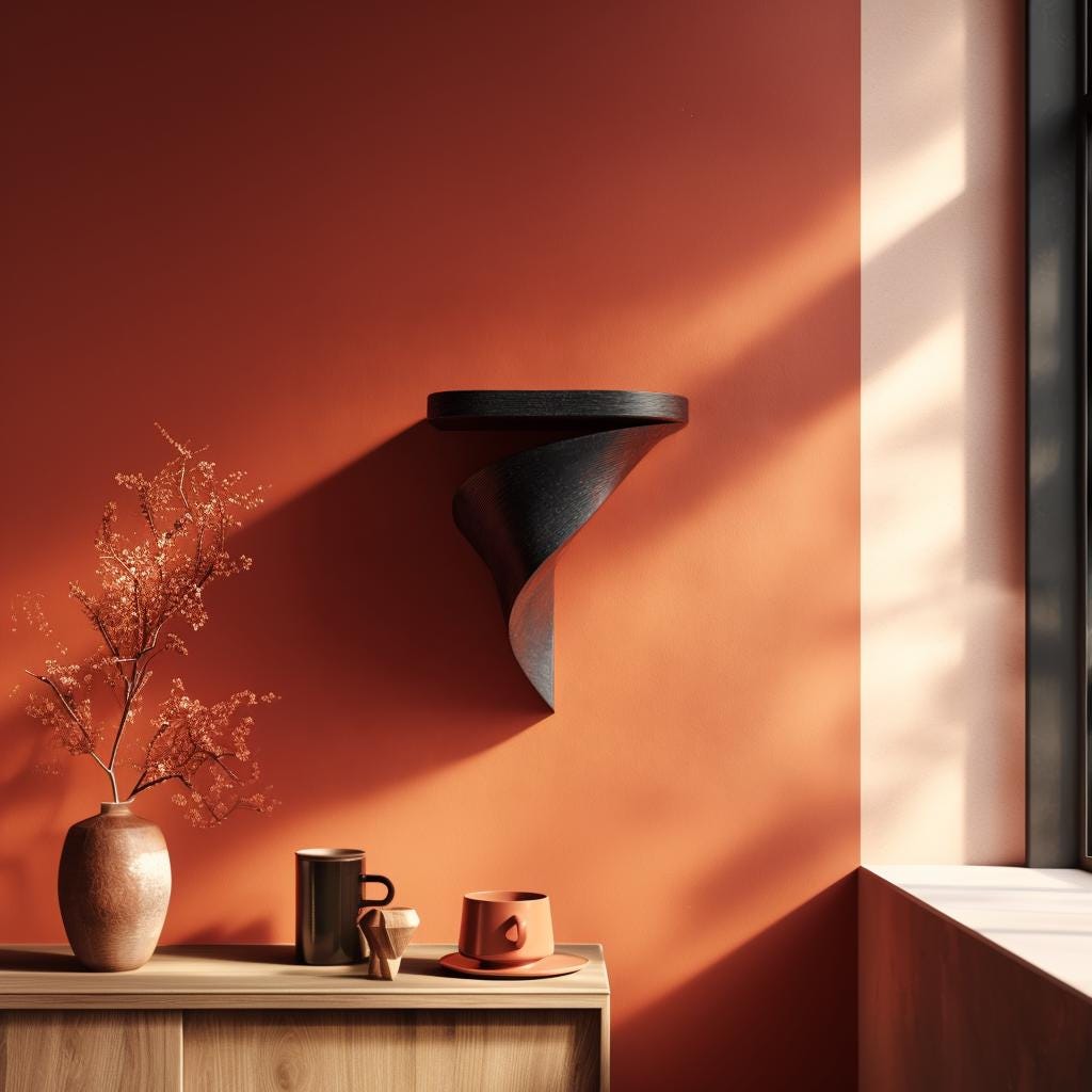 3D-prinditud spiraalne seinariiuli kronstein | Moodne gooti stiilis ujuv ääris | Minimalistlik tumeda fantaasia stiilis väljapanek küünaldele, kristallidele ja väikestele dekoratsioonidele