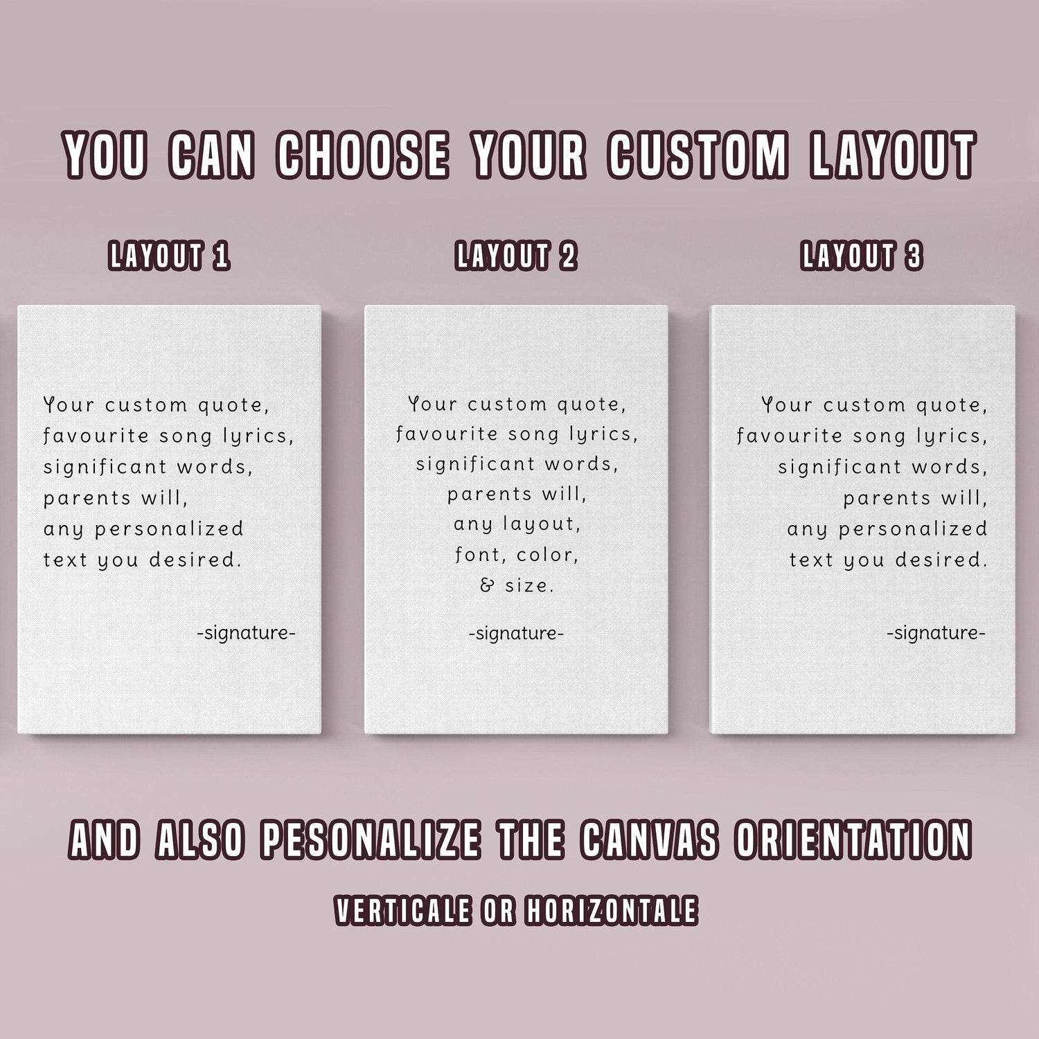 Kas soovite lisada oma ruumi isikupärastatud motivatsiooni? Meie kohandatud hinnapakkumisega raamitud lõuenditrükk on ideaalne lahendus! Looge oma ainulaadne kingitus, kohandades trükist oma lemmiklaulu sõnade või tekstiga.