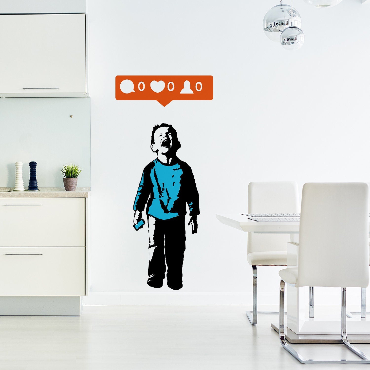 Banksy Crying Boy seinakleebis on ainulaadne ja pilkupüüdev lisand igasse ruumi. Sellel tänavakunsti grafiti kleebisel on tabamatu ja tunnustatud kunstniku Banksy loodud ikooniline kujutis noorest poisist, kes nutab ja hoiab käes pihustusvärvi purki. Kleebis on valmistatud kvaliteetsest vinüülist ja seda saab hõlpsasti kanda mis tahes siledale pinnale, muutes selle mitmekülgseks ja lihtsaks viisiks lisada oma ruumi linnakunsti puudutus.
