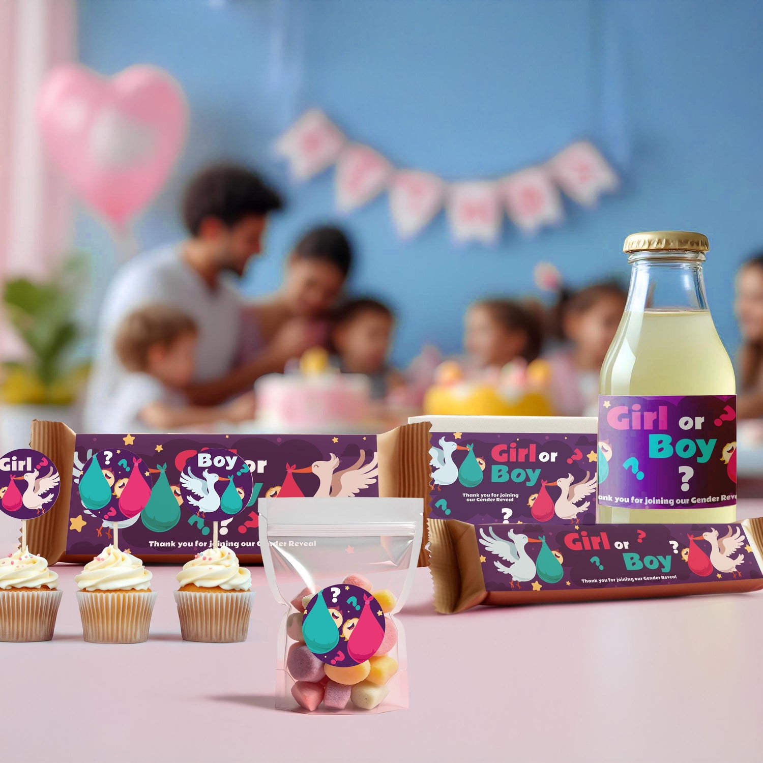 Sugu paljastav kleebiste komplekt | Isikupärastatud poiste või tüdrukute peosildid | Seinakaunistusega pudeli-, šokolaadi- ja kinkekarbi kleebised*!