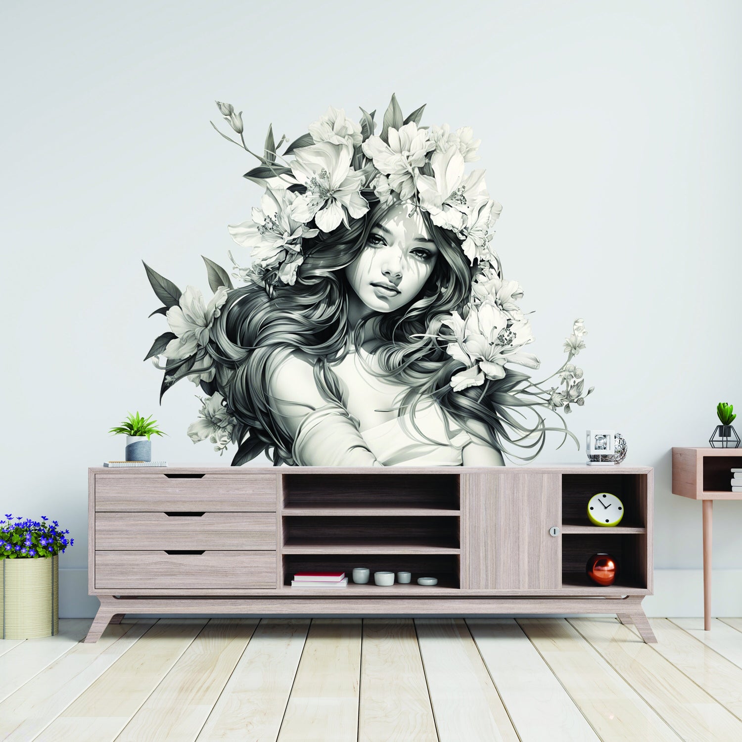 "Elegant Floral-Haired Woman Wall Decal"