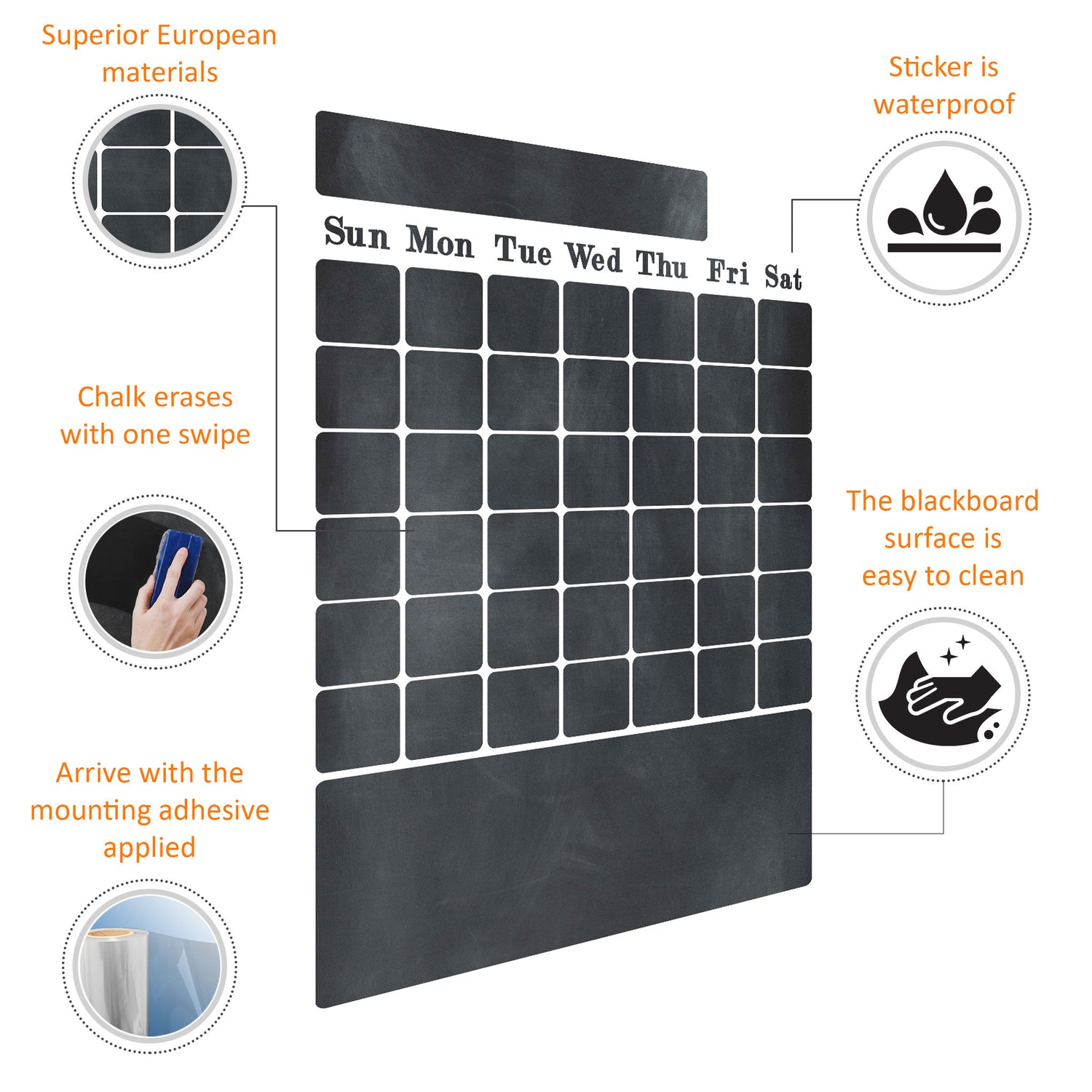* VERSATILE: Suitable for interior use on walls, windows, concrete, wood, plastic, tile or any other smooth surface. Decal is waterproof, and you can write on with chalk or unique chalk markers.