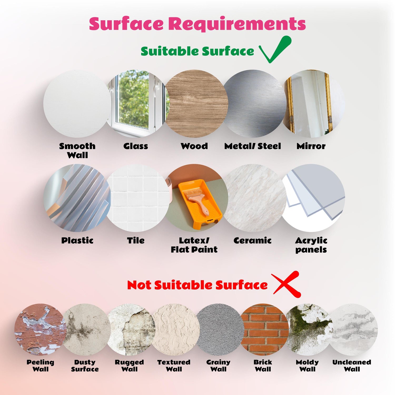 - Surface Preparation: The surface should be clean, dry, and free of dust or grease. Wipe the wall with a dry cloth and allow any freshly painted surfaces to cure for at least 3-4 weeks before applying the sticker.