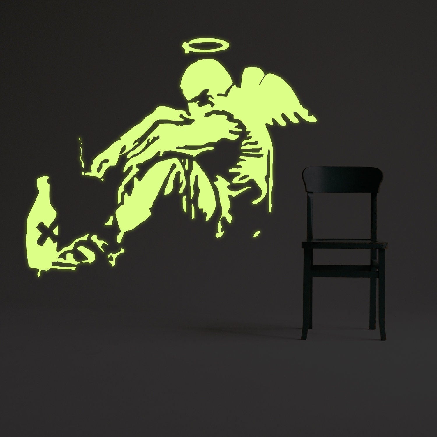 Glow In Dark Banksy Fallen Angel Wall Sticker - Night Glowing Giant Street Graffiti Wings Vinyl Decal
