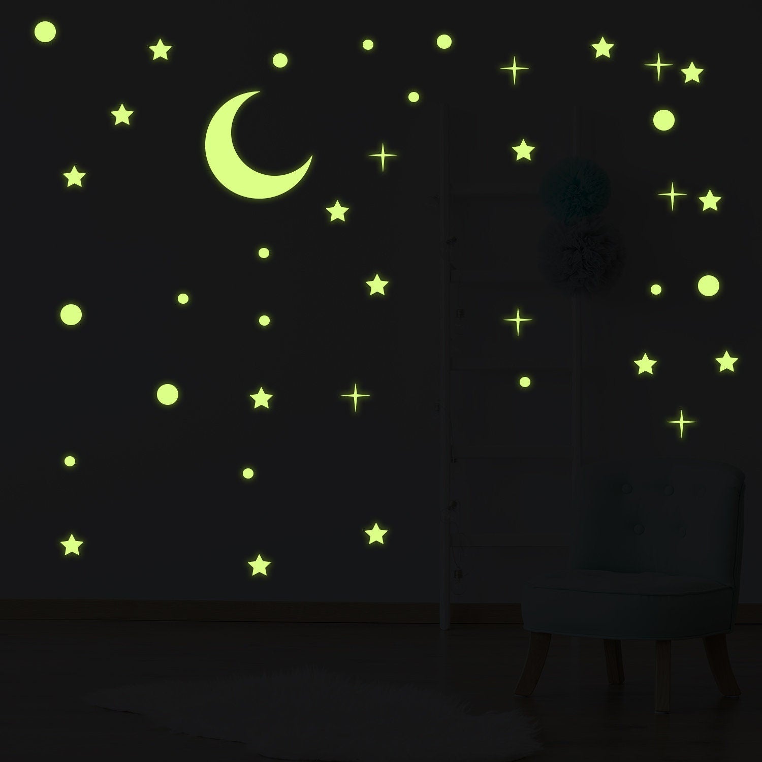 • Our stickers glow in the dark with bright green light, and during the day the sticker color is white. These quality cast types of vinyl are made to retain superior brightness under any lighting condition.