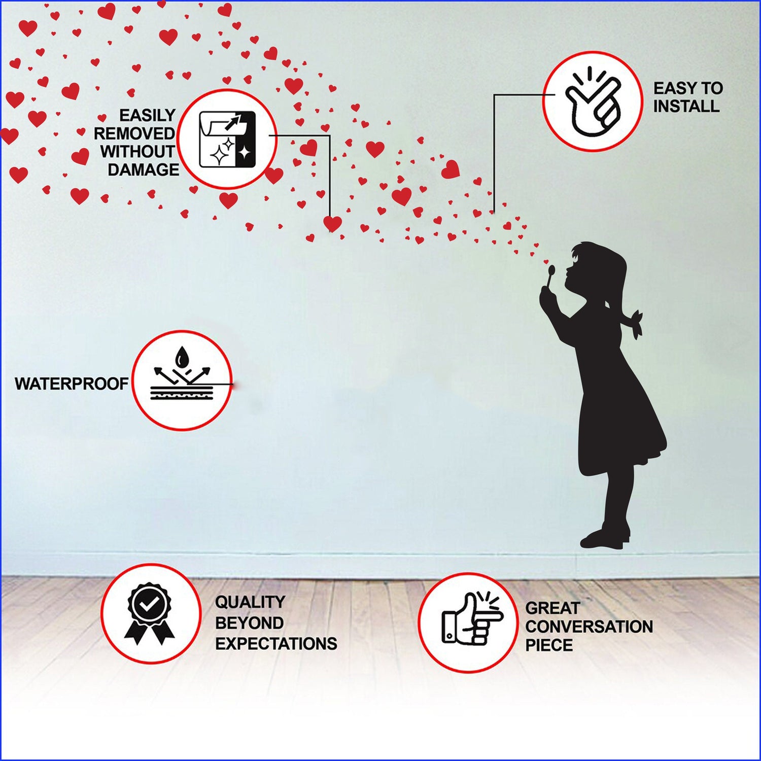 Heart Bubbles Girl Wall Sticker - Street Art Graffiti Love Vinyl Decal