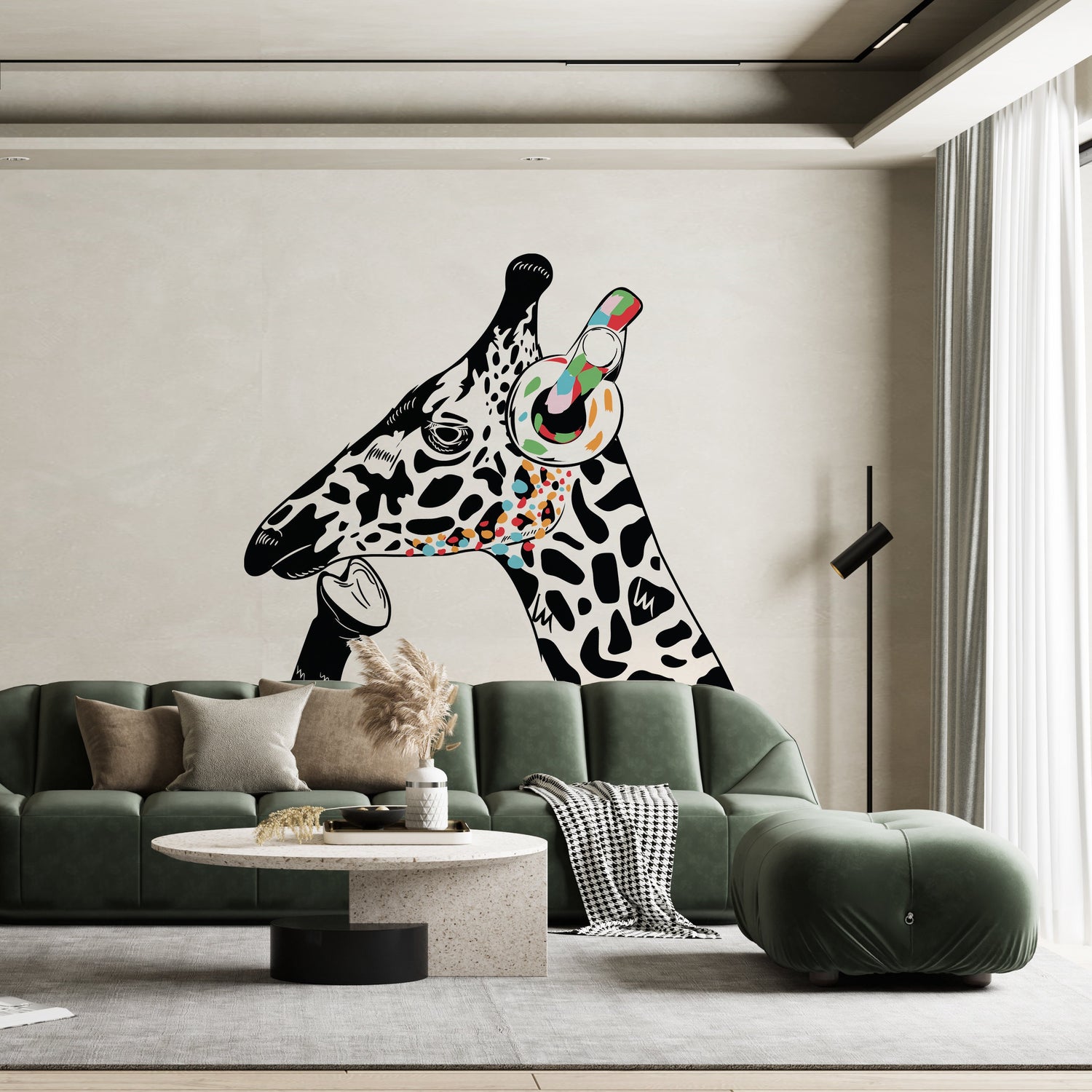 Thinking Giraffe Sticker - Inspired by Banksy Art Vinyl Dj Baksy Wall Decal - 24 x 16 inches / Left (Main photo) is backordered and will ship as soon as it is back in stock.