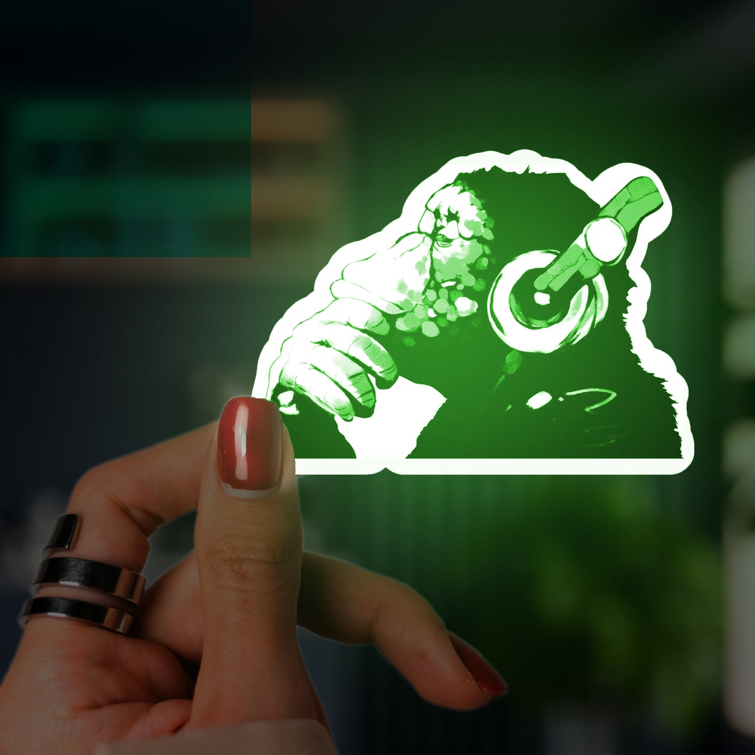 Glow in The Dark Laptop Vinyl Decal - Glowing Music Monkey In Headphones Sticker