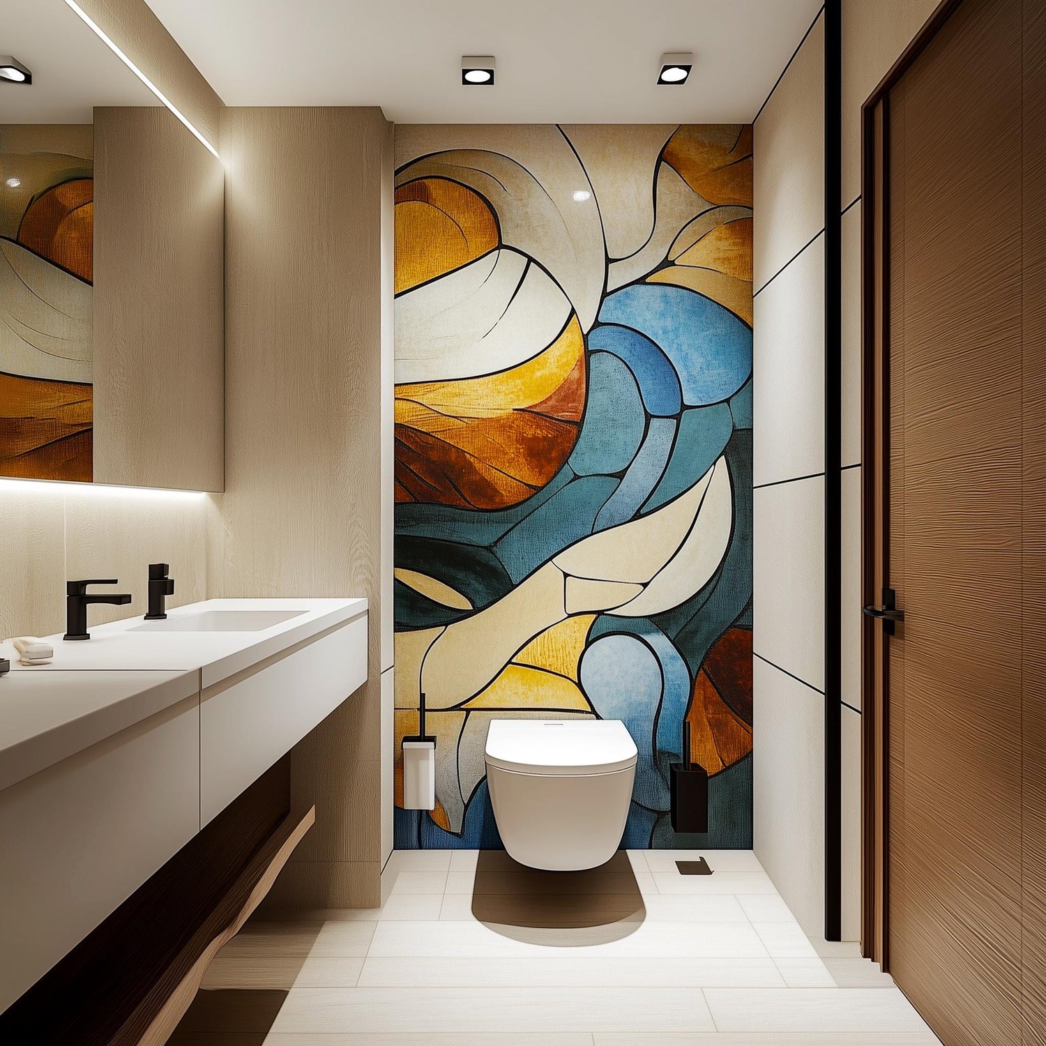 🎨 **Elevate your space with this modern abstract bathroom wall mural!** 🎨