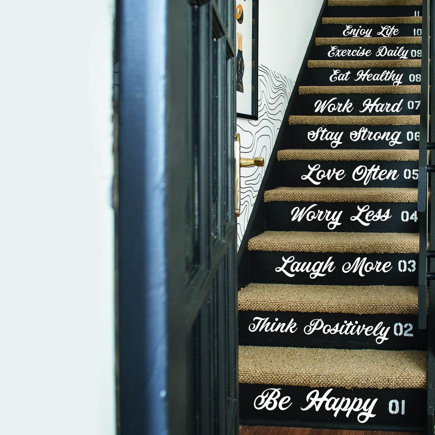 Stair riser quotes vinyl decals featuring positive sayings for home staircase decor.